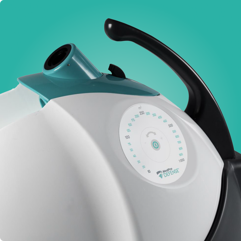 A powerful machine with a patented turbine designed to transform liquid Nocolyse disinfectant into gas form that reaches all areas effectively
